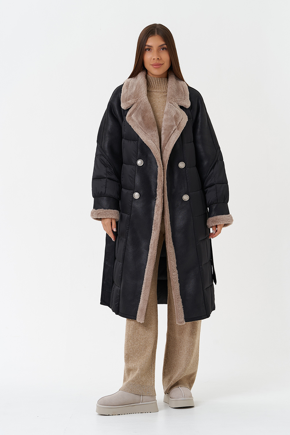 Крой воротника - отложной, отделка эко мех